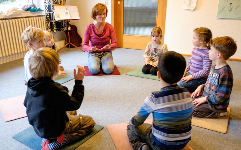 In kleinen Gruppen (8 bis 10 Kinder) werden die Phantasie und die Kreativität durch Spiel, Bewegung, Erfinden, Improvisieren, Singen und Musizieren mit elementaren Instrumenten angeregt. Die musikalische Früherziehung dauert in der Regel zwei Jahre.
